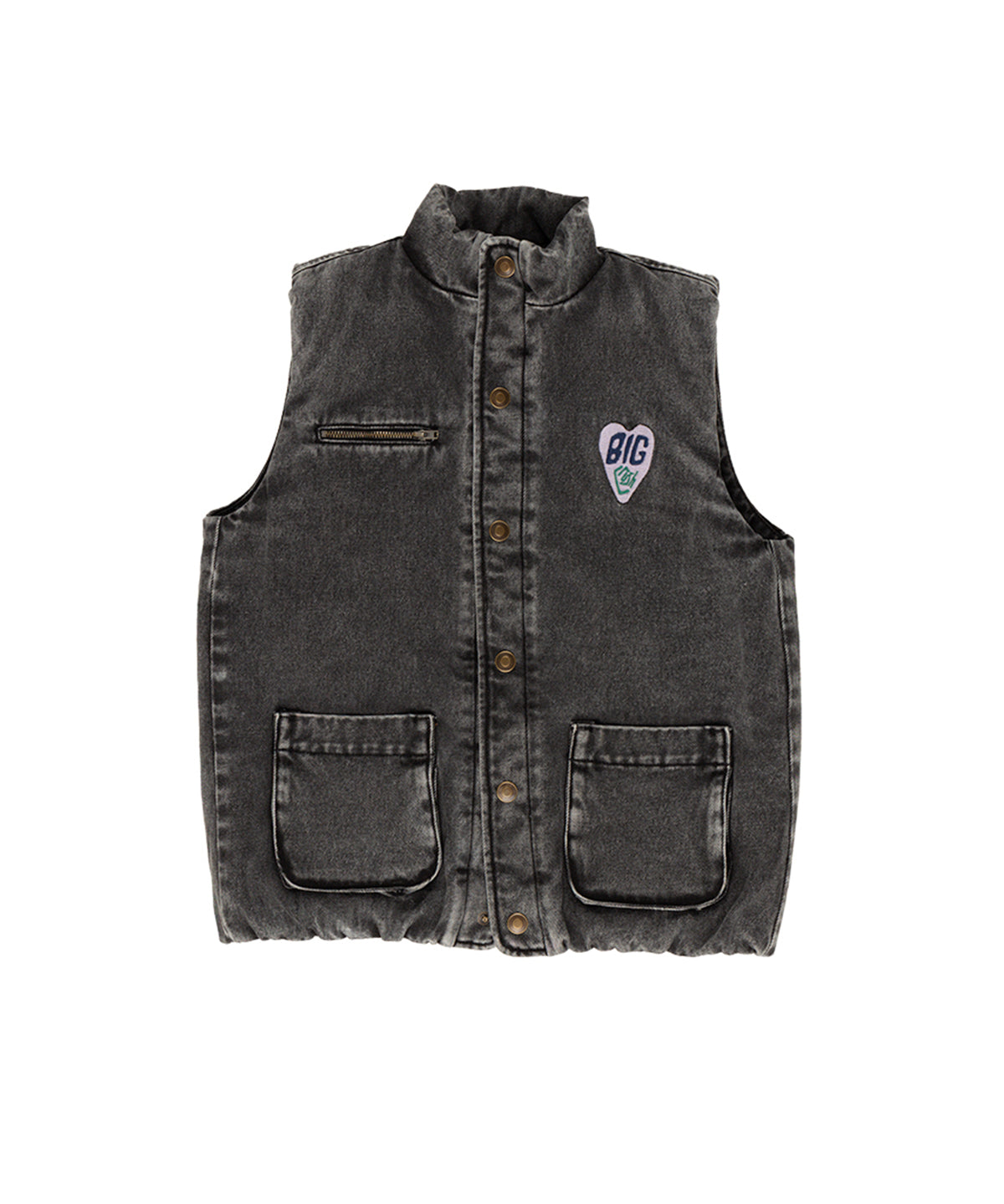 Grey Denim Sleeveless Padded Jacket